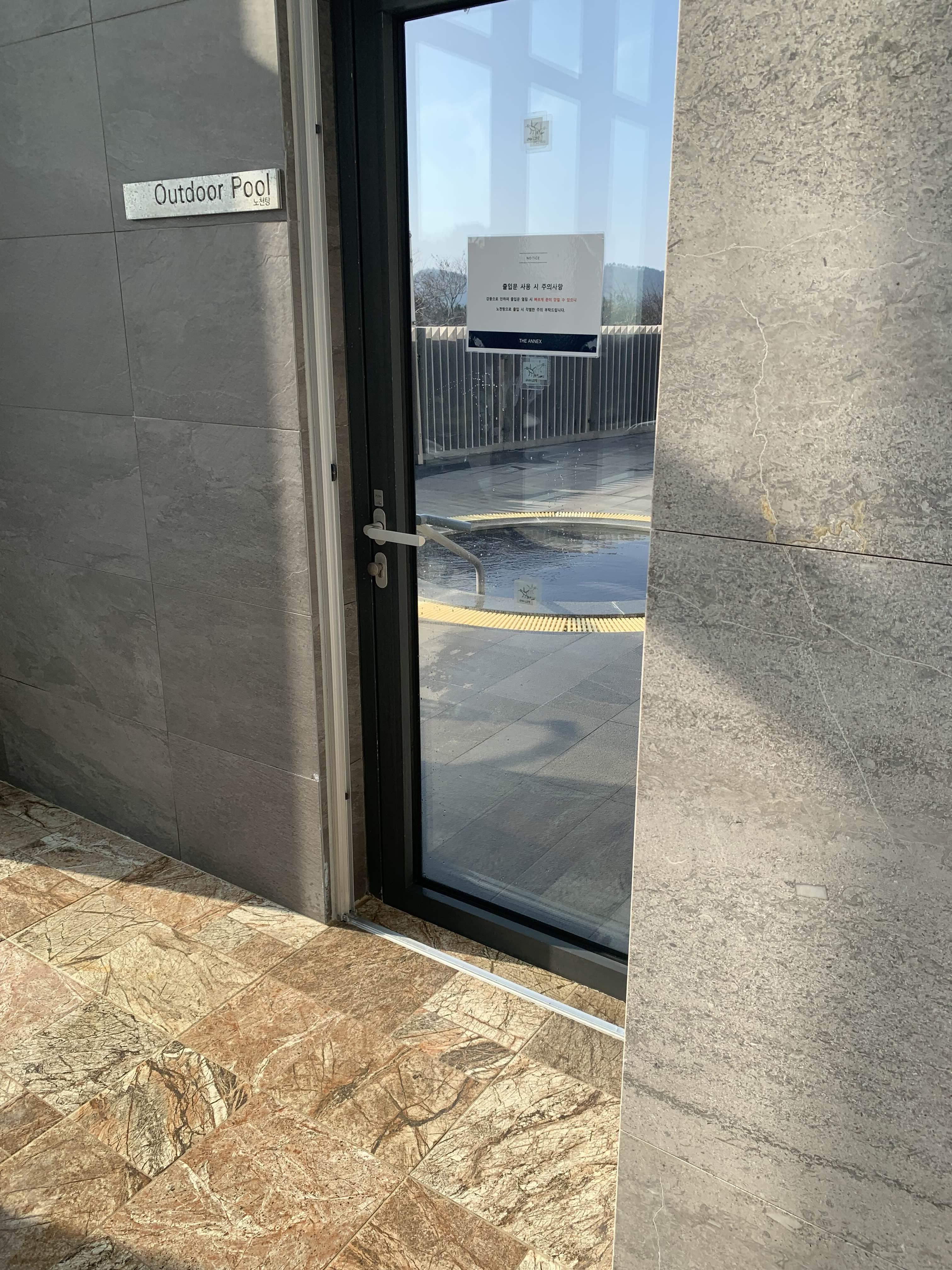 그 문으로 나가면 따땃한 실외 온천이 2개나 있어요 ~