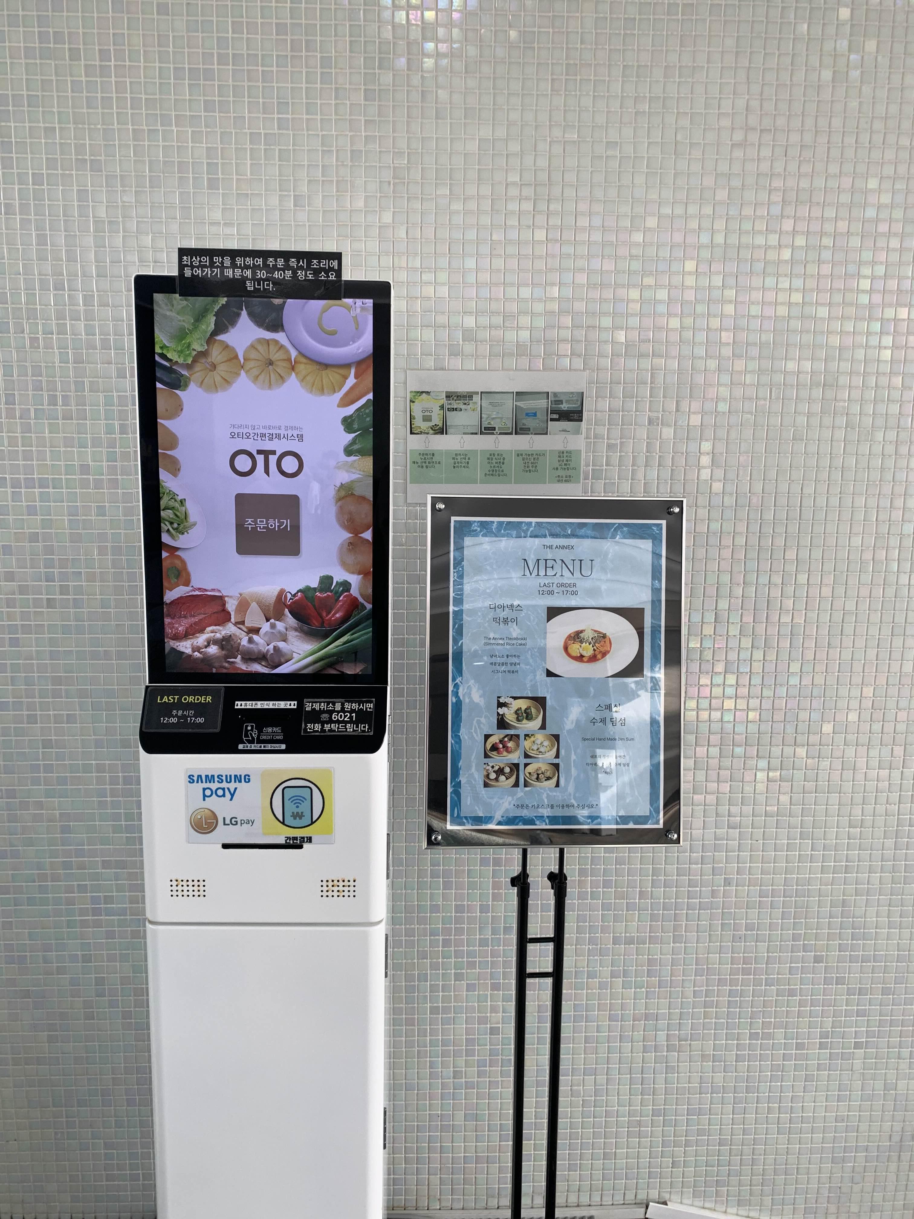 배고프면 키오스크로 디아넥스 떡볶이와 수제 딤섬을 주문해서 먹을 수도 있습니다.