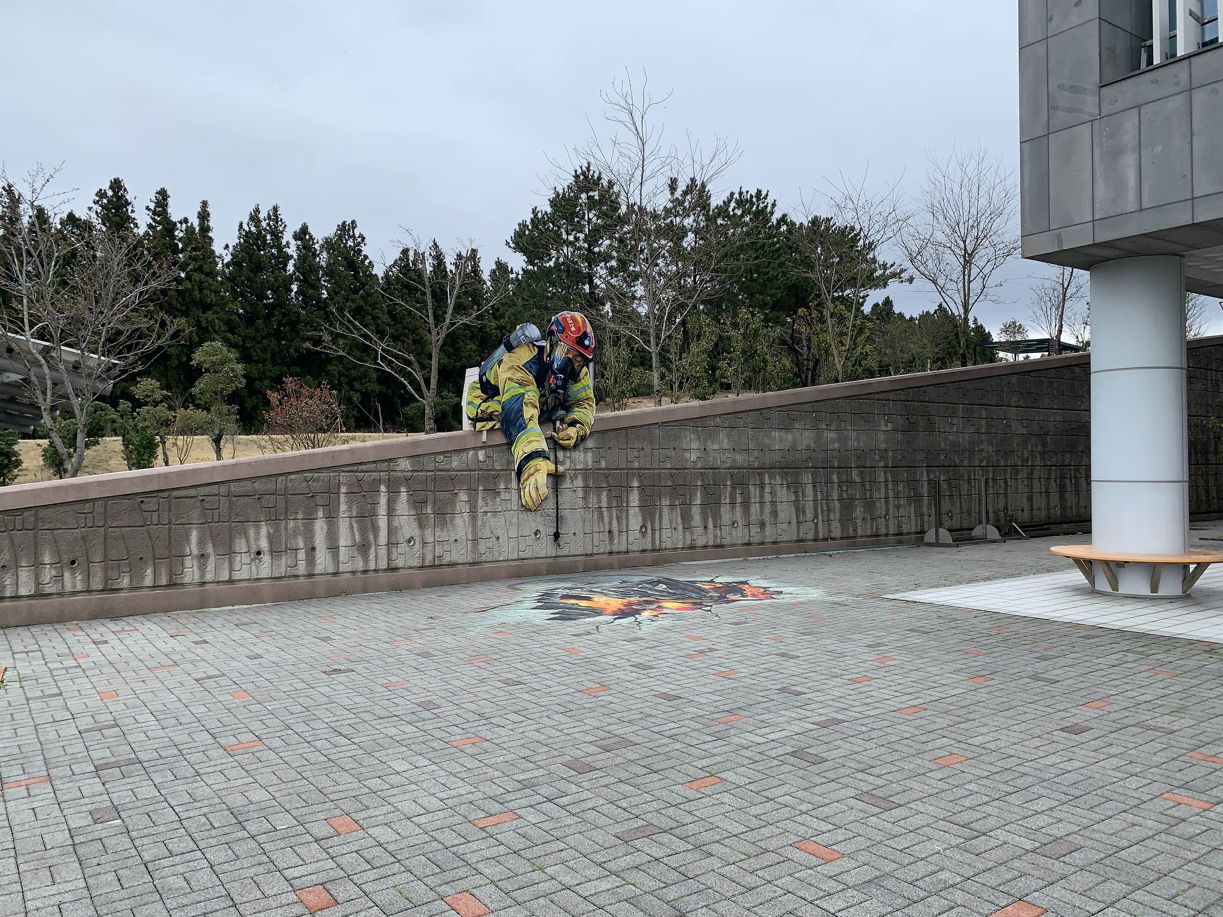 밖에는 화재가 났을 때 소방관과 호흡하는 체험 시설도 있습니다.