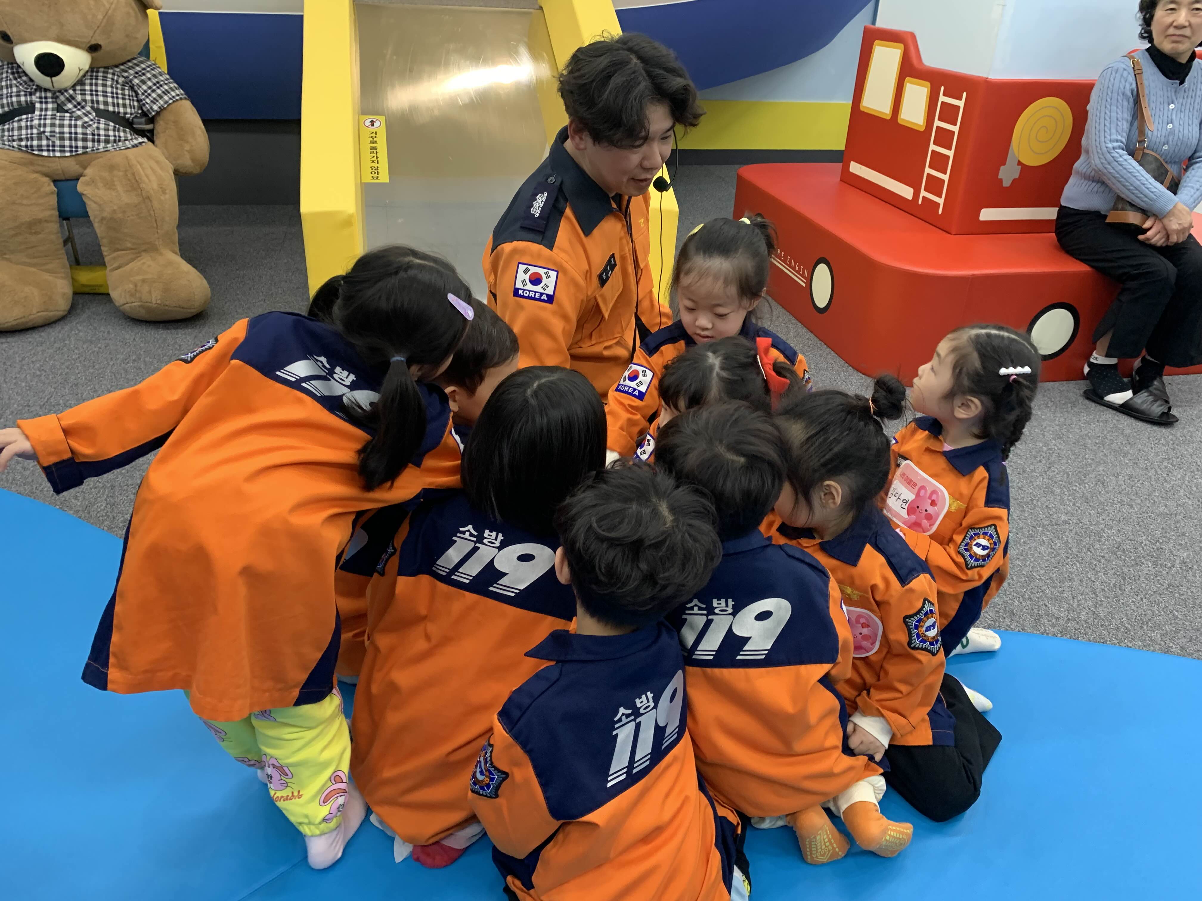 어린이안전체험관은 보호자와 함께 들어가지만 체험은 5~7세 아이와 소방대원이 하게 됩니다.