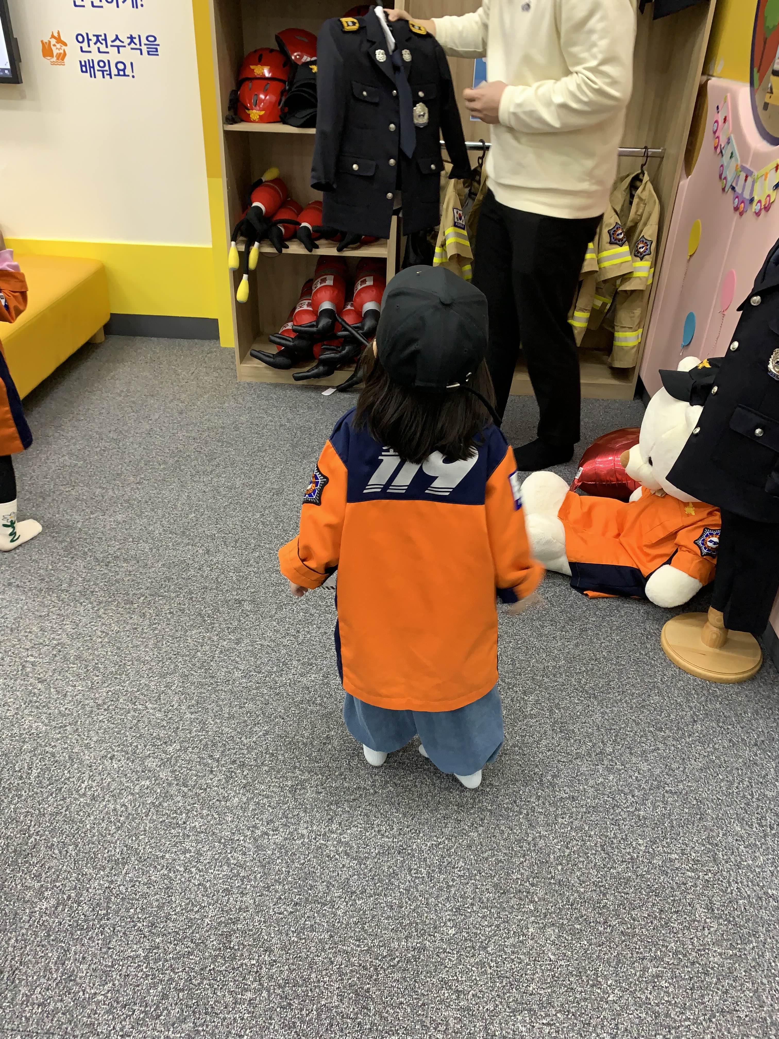 소방관 옷 외에 다양한 옷도 입어 볼 수 있습니다.