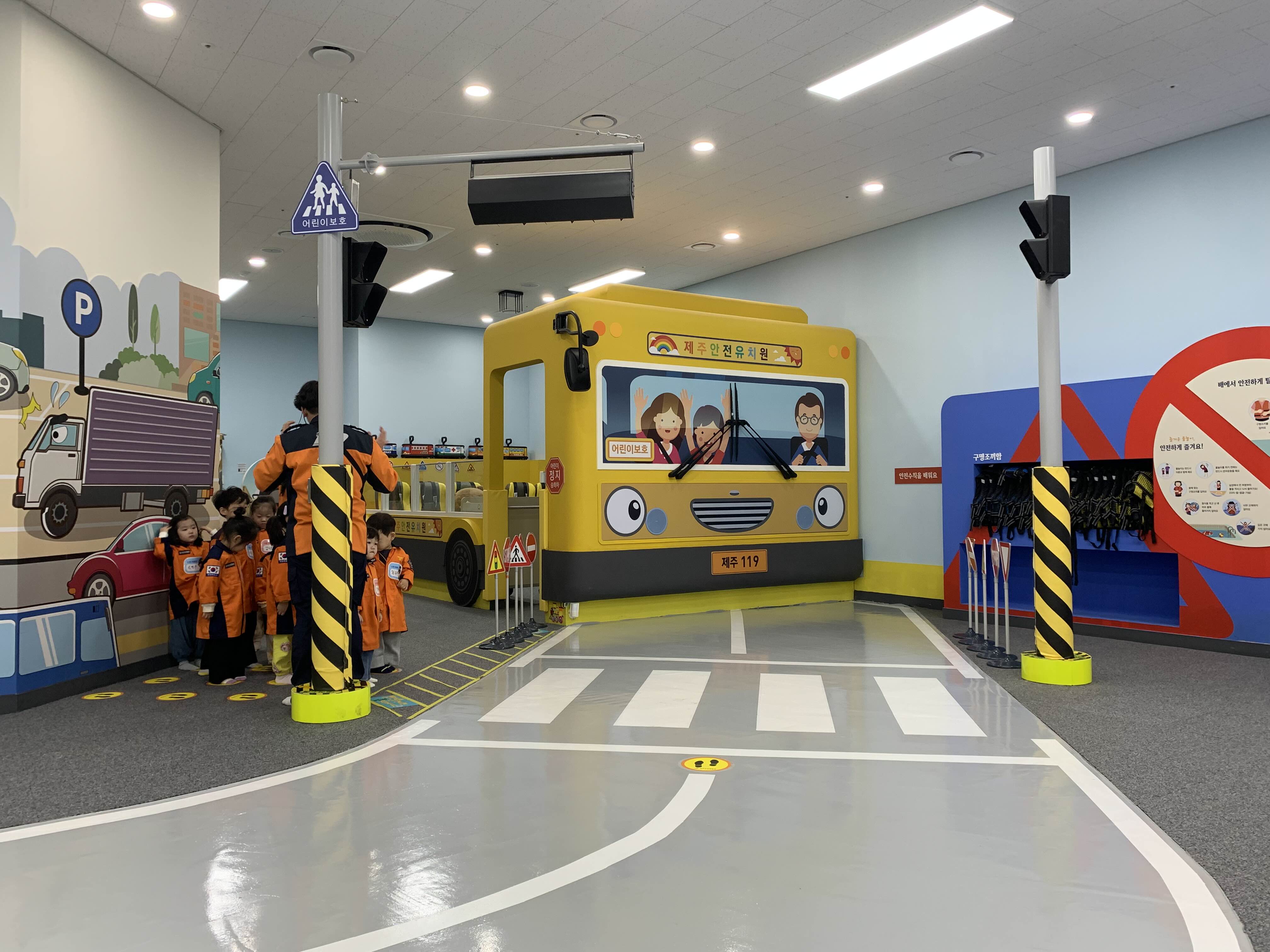 지진 체험이 끝나고 그리고 안전 유치원 버스를 타고 안전벨트의 중요성에 대한 체험도 끝나면, 이렇게 신호등의 중요성도 다시 한번 배우는 시간을 가지게 됩니다.