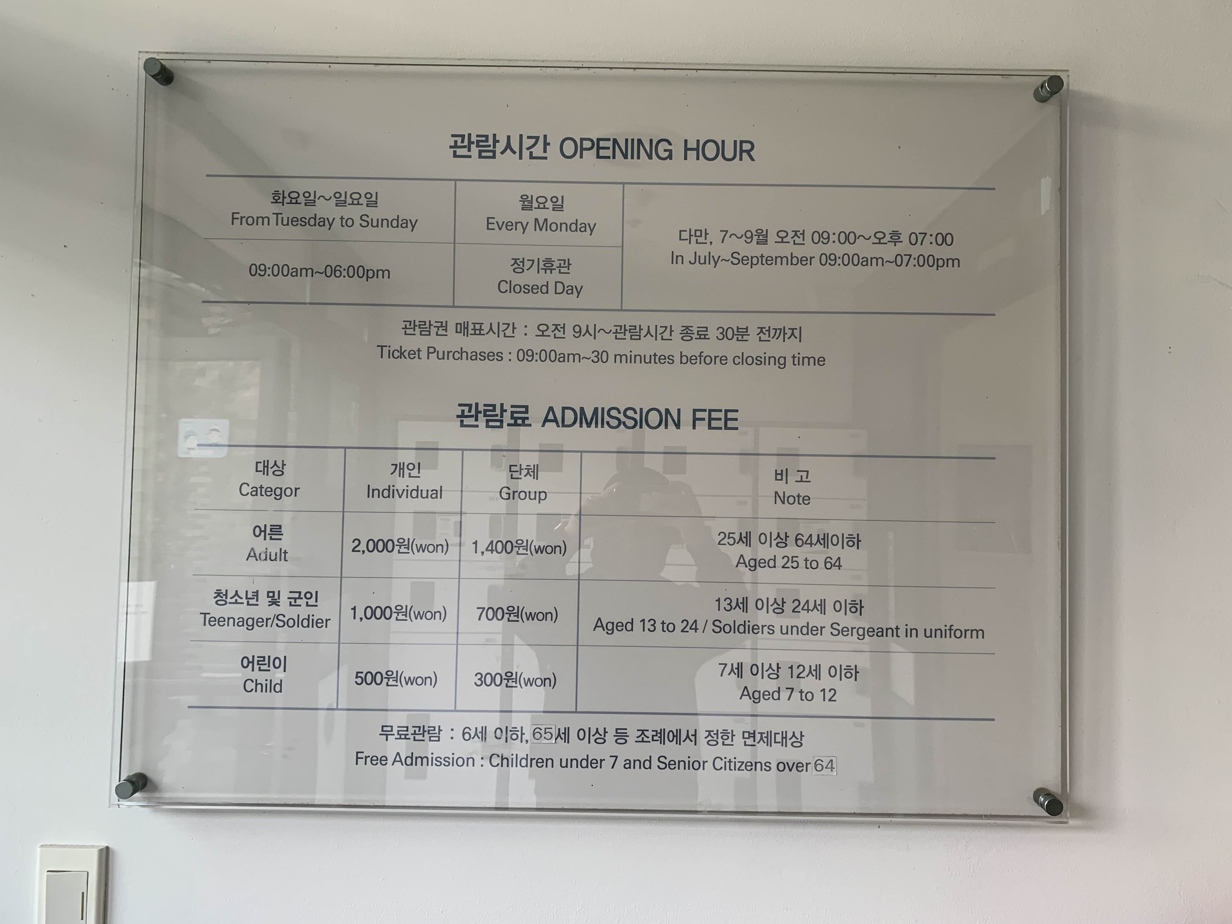 여기에는 나와 있지 않지만 2자녀 다자녀는 무료로 관람할 수 있습니다.